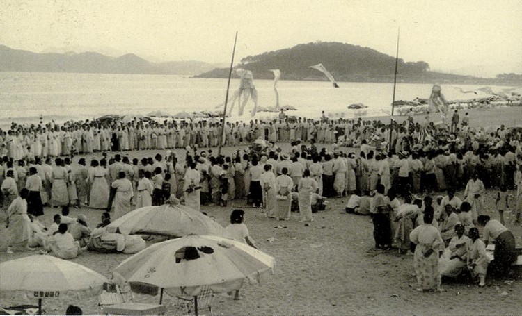 1960년도 헤운대해수욕장에서 용왕재모습(해운대백년사에서)